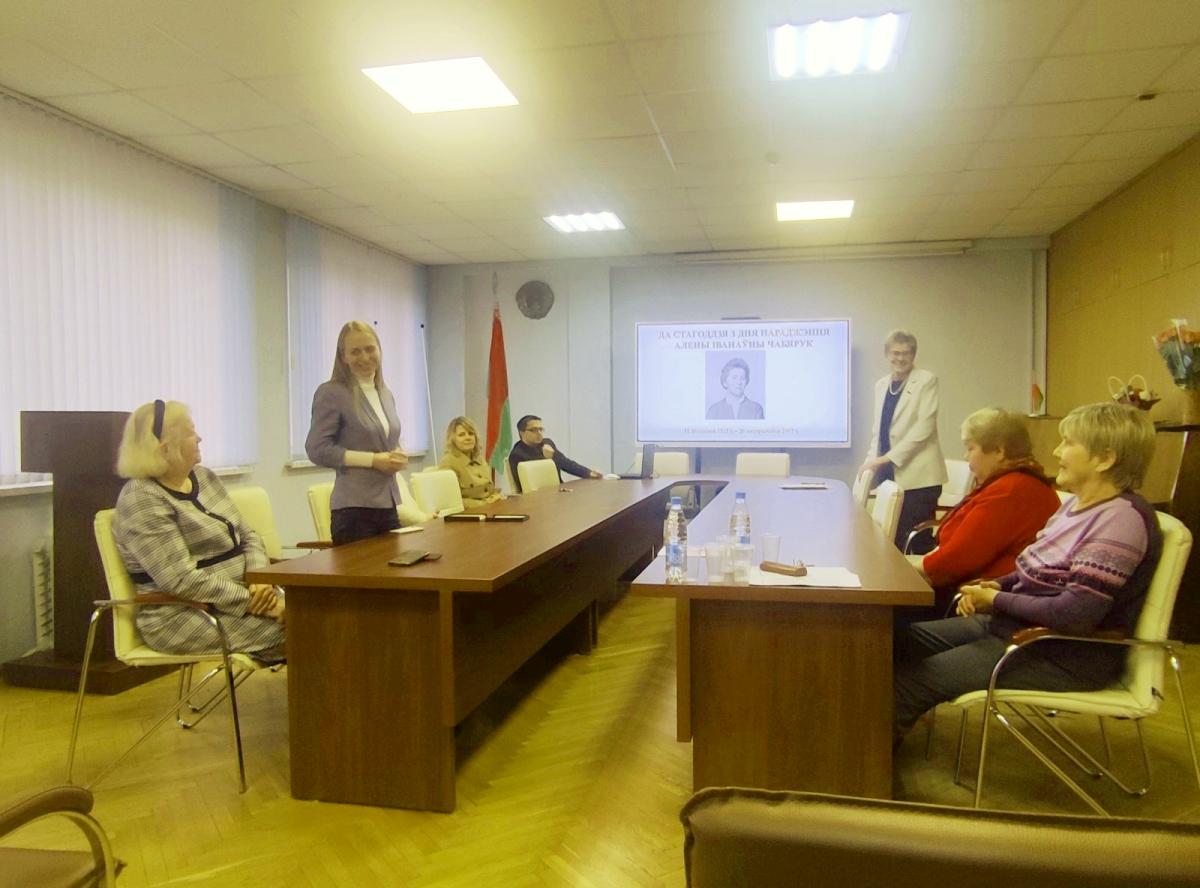 Пра жыццёвы шлях Алены Іванаўны Чабярук расказала прысутным Вераніка Мікалаеўна Курцова, загадчык аддзела дыялекталогіі і лінгвагеаграфіі.