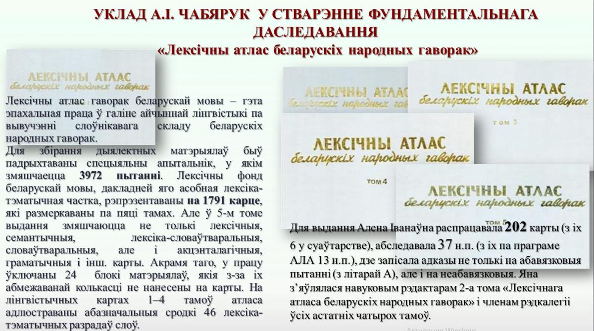 11 лістапада ў Інстытуце мовазнаўства імя Якуба Коласа адбыўся круглы стол. Ён быў прысвечаны 100-годдзю з дня нараджэння выбітнага дыялектолага, лаўрэата Дзяржаўнай прэміі СССР і Дзяржаўнай прэміі Рэспублікі Беларусь Алены Іванаўны Чабярук. На круглым стале прысутнічалі дачка Алены Іванаўны Яўгенія Мікалаеўна Яфімава і ўнучка Марыя Анатольеўна Яфімава. Іх прысутнасць дадала асаблівай цеплыні і ўзрушанасці пасяджэнню. Дзякуючы ўспамінам родных прысутныя даведаліся пра Алену Іванаўну як маці і бабулю, прыгадалі яны таксама, што запомнілася ім з расповедаў Алены Іванаўны пра падзеі, звязаныя са стварэннем атласа, пра палявыя даследаванні.