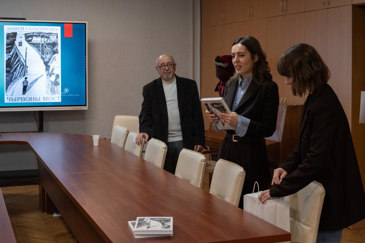 У цёплай і шчырай атмасферы ў Цэнтры даследаванняў беларускай культуры, мовы і літаратуры НАН Беларусі 17 лістапада прайшла прэзентацыя новай кнігі пісьменніка, журналіста, аўтара вядомых праграм «Суразмоўцы» і «Дыялогі пра культуру», заслужанага дзеяча культуры Рэспублікі Беларусь Навума Гальпяровіча “Чырвоны мост”. Калегі, сябры, вучоныя і юныя чытачы сабраліся разам, каб абмеркаваць твор, падзяліцца ўражаннямі і павіншаваць аўтара з выхадам кнігі. Імпрэзу адкрыла дырэктар Цэнтра Вольга Мікалаеўна Папко, якая адзначыла ўклад у беларускую літаратуру і культуру Навума Якаўлевіча і сардэчна пажадала яму творчага натхнення і новых літаратурных адкрыццяў.