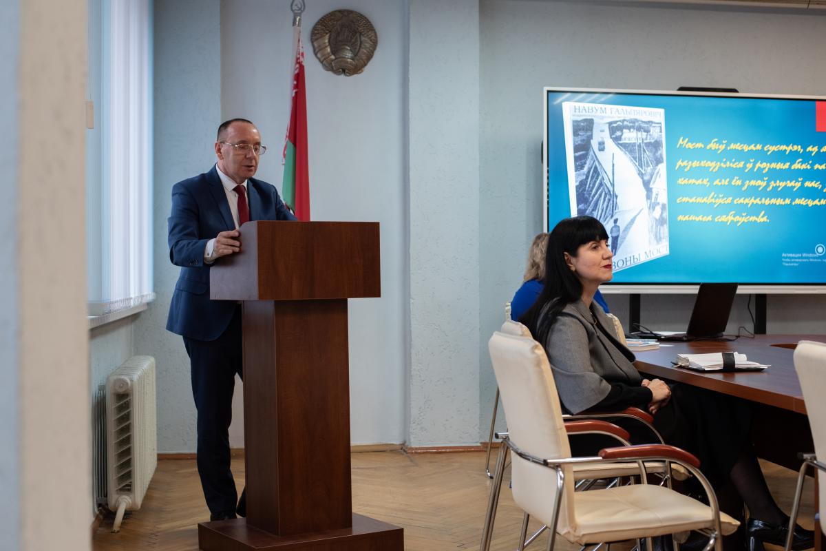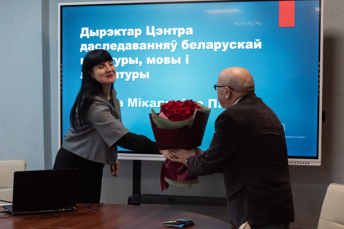 З цёплымі словамі ўдзячнасці выступілі супрацоўнікі Інстытута мовазнаўства імя Якуба Коласа Алена Путрыч і Паліна Басалыга. Падарунак “Скрыні жыццёвых крокаў”, сабраны з прадметаў, сімвалізаваў важныя этапы жыцця аўтара, яго асабісты “крок” па мосце творчага і чалавечага станаўлення.