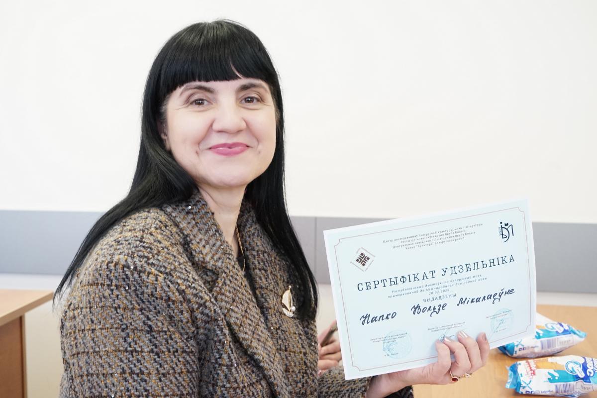 Напрыканцы ўсе ўдзельнікі мерапрыемства атрымалі сертыфікаты і салодкі пачастунак – марожанае ад брэнда «Белы полюс». Тым, хто выдатна справіўся з дыктоўкай, дырэктар Інстытута мовазнаўства І.Л. Капылоў уручыў памятныя падарункі – кнігу «Беларуская мова ад А да Я».