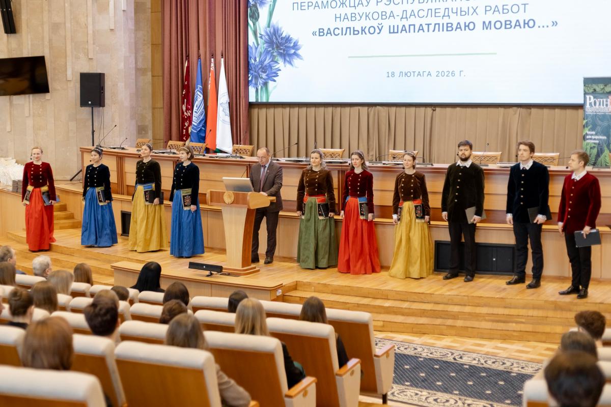 18 лютага ў вялікай зале Прэзідыума Нацыянальнай акадэміі навук Беларусі адбылася ўрачыстая цырымонія ўзнагароджання пераможцаў Рэспубліканскага конкурсу навукова-даследчых работ «Васількоў шапатліваю моваю…», прымеркаванага да Дня роднай мовы.