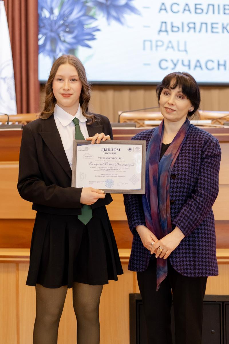 Кульмінацыяй цырымоніі стала ўручэнне Гран-пры конкурсу вучаніцы 11 класа ДУА «Сярэдняя школа № 2 г. Бярозаўкі» Конан Сняжане Анатольеўне за работу «Як на адной галінцы месцяцца варабей, верабей, гарабей, ці Асаблівасці гаворкі жыхароў горада Бярозаўкі». Навуковы кіраўнік – Несцер Святлана Вячаславаўна, намеснік дырэктара па вучэбнай рабоце, настаўнік беларускай мовы і літаратуры. Пераможца атрымала не толькі дыплом I ступені, але і спецыяльны падарунак ад Беларускага радыё – разумную калонку «Аліса», а таксама памятныя сувеніры.
