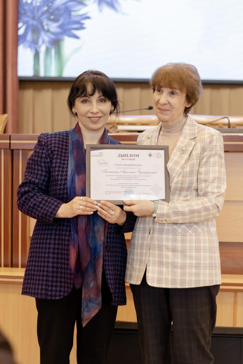 Партнёры конкурсу – навуковы і метадычны часопіс «Роднае слова» і Беларускае радыё, канал “Культура” – у асобе галоўнага рэдактара Наталлі Мікалаеўны Шапран і намесніка дырэктара Таццяны Багданаўны Гулевіч – уручылі дыпломы III ступені. Пасля гэтага слова было прадастаўлена старшыні Аб’яднанай галіновай прафсаюзнай арганізацыі работнікаў НАН Беларусі Беларускага прафсаюза работнікаў адукацыі і навукі Бараноўскаму Івану Андрэевічу.